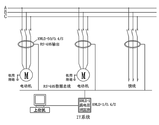 KWLD-6000系列智能漏電監(jiān)測系統(tǒng)主要由 KWLD-1漏電監(jiān)測主機(jī)、KWLD-50/80 智能漏電檢測互感器組成。漏電互感器通過串行總線,將漏電流數(shù)據(jù)上送到監(jiān)測主機(jī),監(jiān)測主機(jī)通過TCP/IP協(xié)議與后臺監(jiān)控計算機(jī)進(jìn)行數(shù)據(jù)交換,實(shí)現(xiàn)通訊組網(wǎng)。并且陰雨天絕緣整體劣化情況自動適應(yīng),采用模糊算法干擾屏蔽,使其工作穩(wěn)定可靠。
